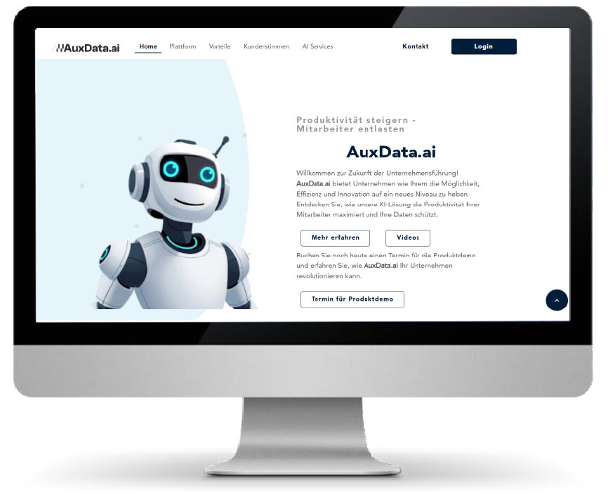 Vom sofortigen Einstieg im Webbrowser bis zur Enterprise-Lösung erschaffen Sie mit AuxData.ai Ihr eigenes KI-Universum im Unternehmen. Zahlreiche vorkonfigurierte AI-Services entlasten Ihre Mitarbeiter von Anfang an.